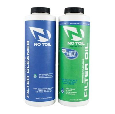 Included in these combo packs is a bottle of No Toil Bio Filter Cleaner, and a bottle of No Toil Evolution Filter Oil, which is alcohol-free.