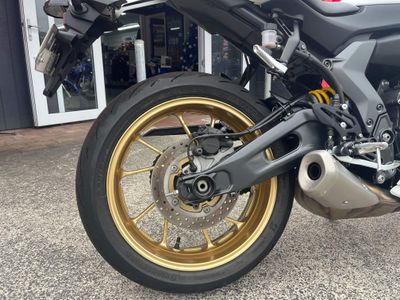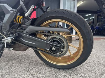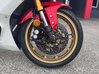 - Linked type Monocross single shock with adjustable spring preload and rebound damping for an ideal balance between ride comfort and supersport performance, for capability across a wide range of uses from urban commuting to track days.